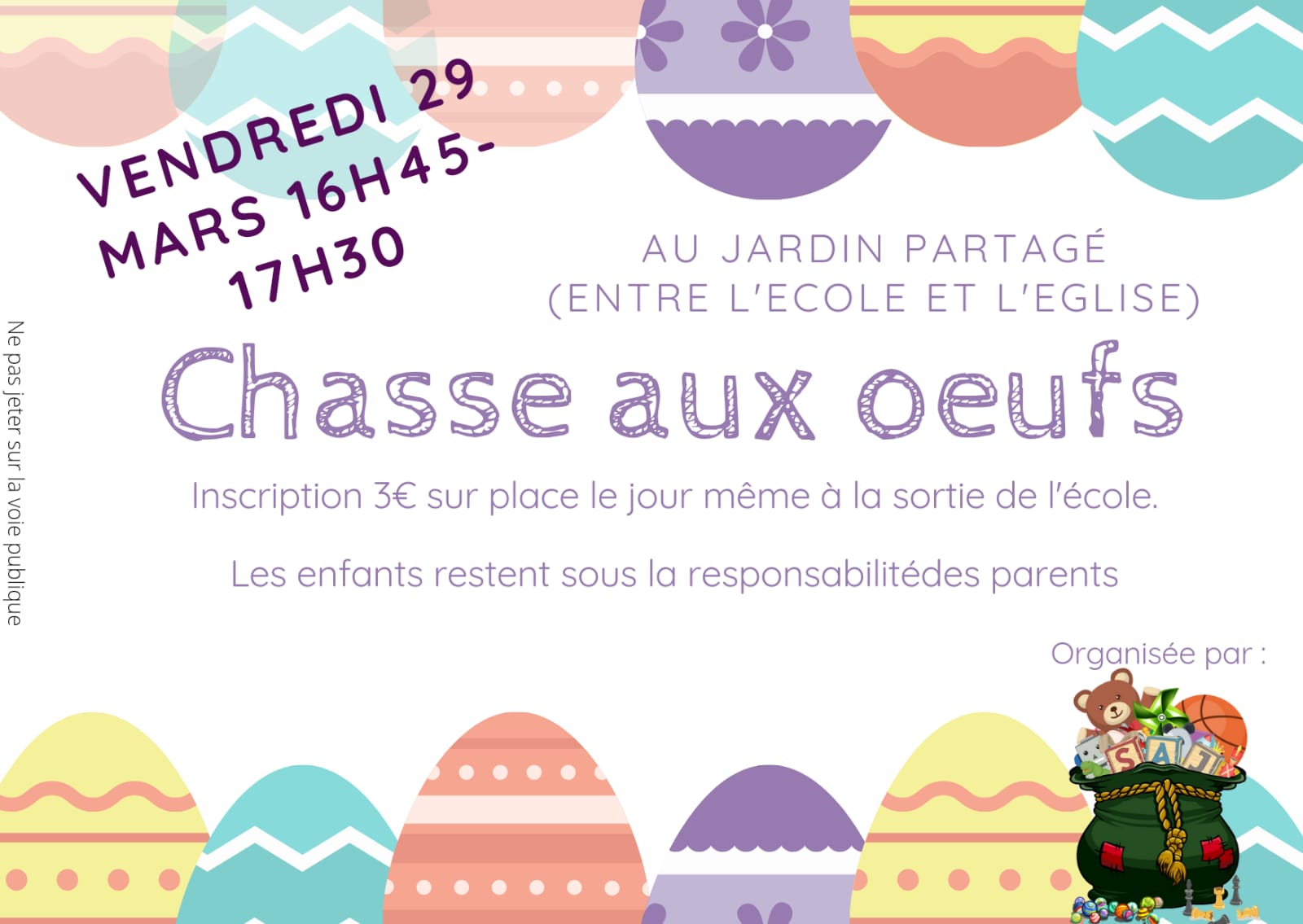 Chasse aux Œufs 2024 9Avr 202425 Avr 2024 🗓️ Date : 12/04 ⏰ Heures : 16h45-17h30 🏡 Devant l’école Similaire