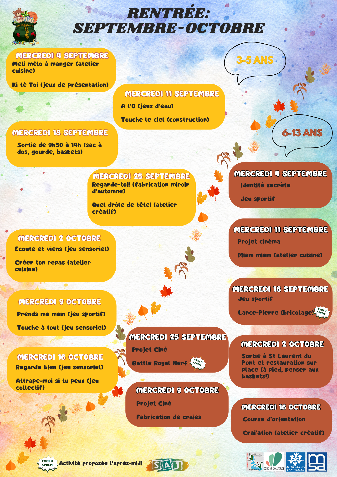 🗓️ Dates d’ouverture de l’ALSH : 04/09 au 16/10