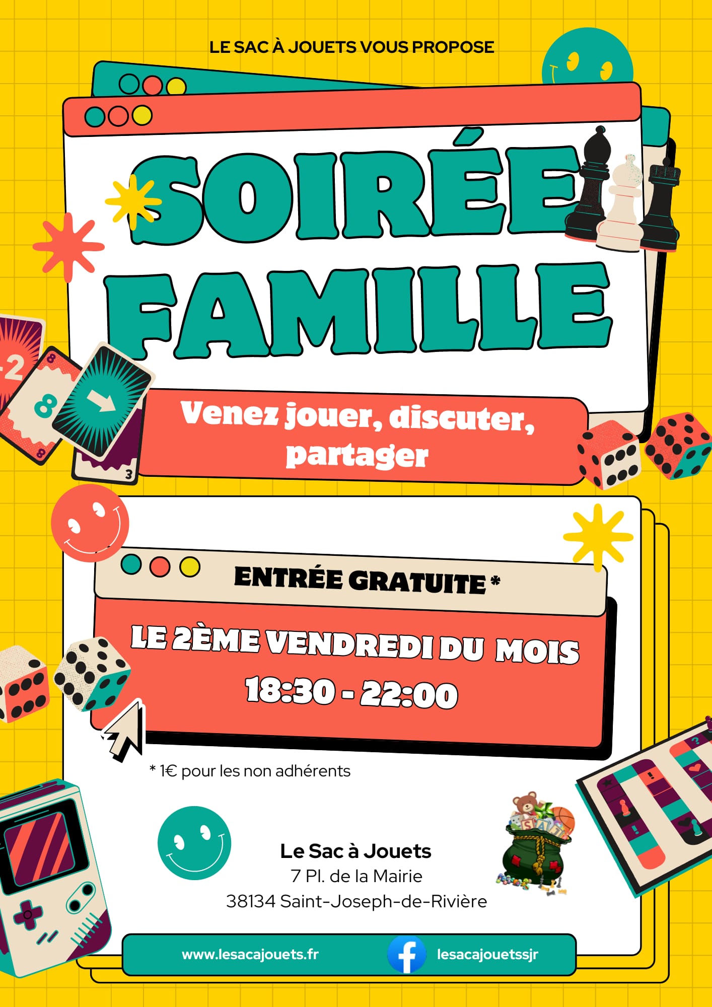 Nous sommes ravis de vous annoncer que les Soirées Familles au Sac à jouets reprendront à partir du mois d’octobre ! Ces moments chaleureux auront lieu chaque 2ème vendredi du mois, et nous vous donnons rendez-vous dès le vendredi 11 octobre pour une nouvelle saison.