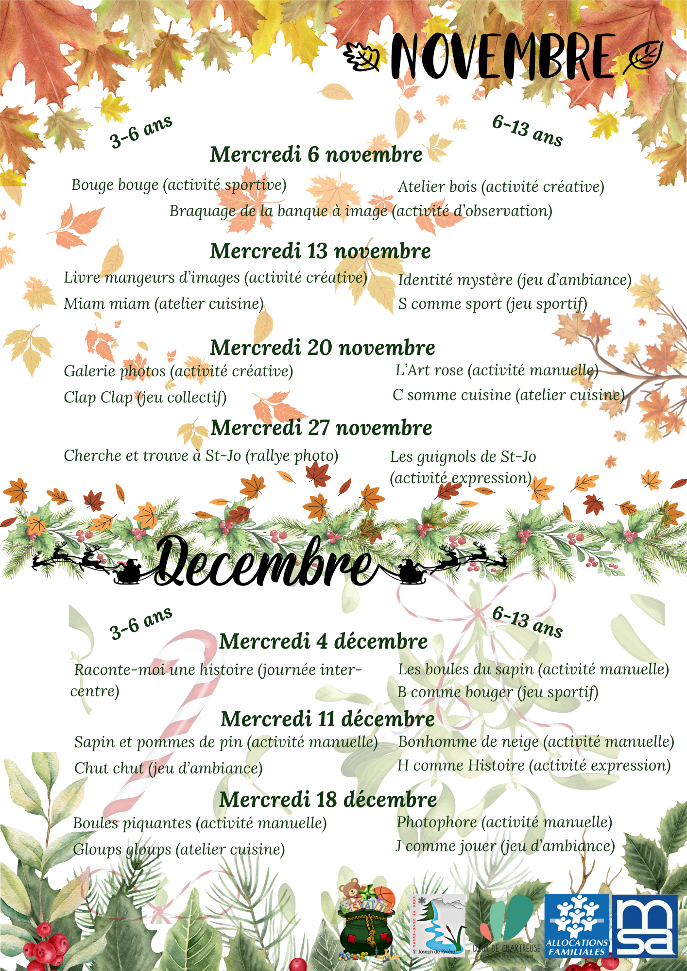 🗓️ Dates d’ouverture de l’ALSH : 06/11 au 18/12
