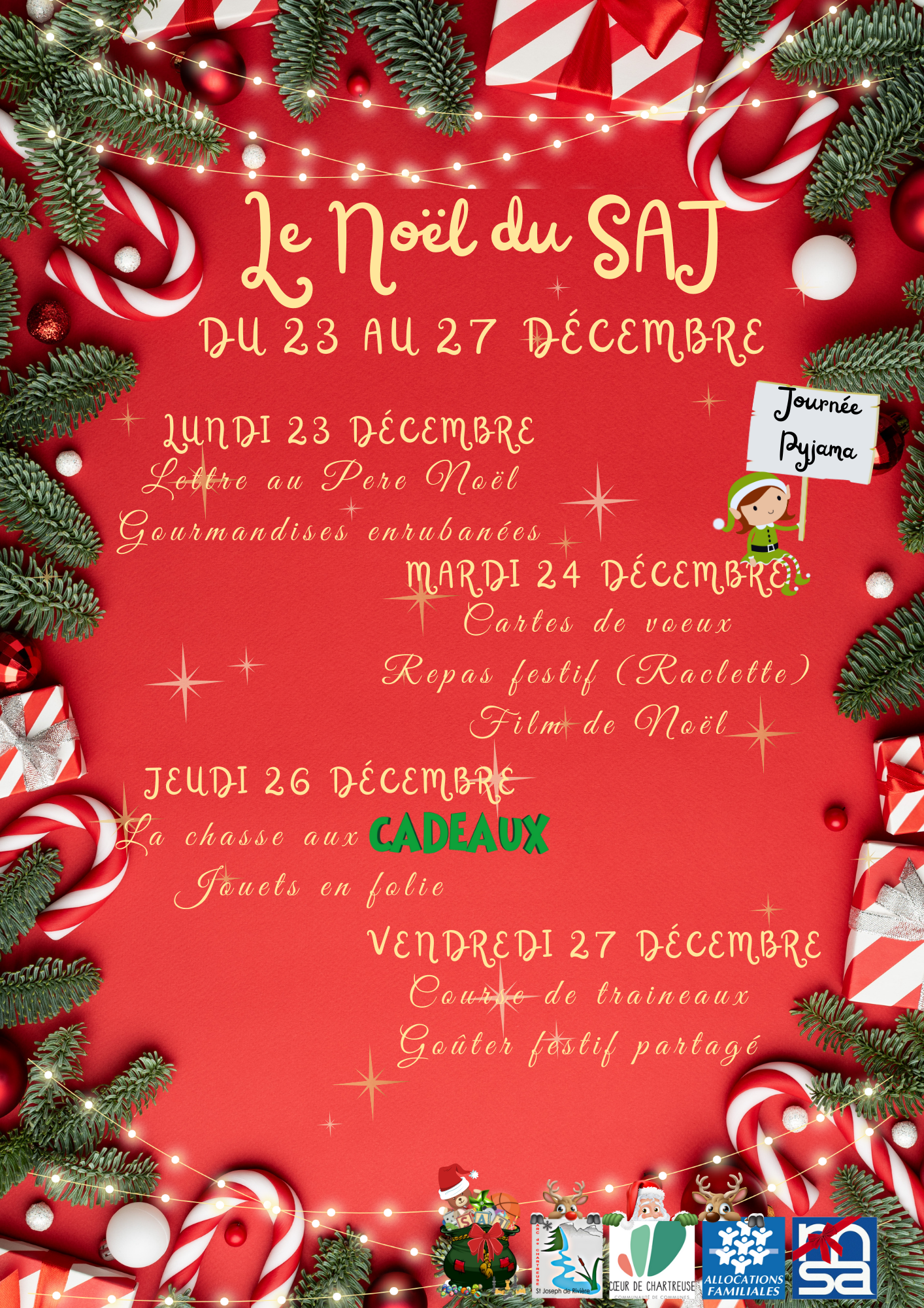Notre centre de loisirs sera fermé du 30 décembre au 3 janvier. Pendant cette période, vous pourrez vous adresser au Centre Social des Pays du Guiers, basé à Saint-Laurent-du-Pont, qui gère un accueil de loisirs situé à Miribel-les-Échelles.