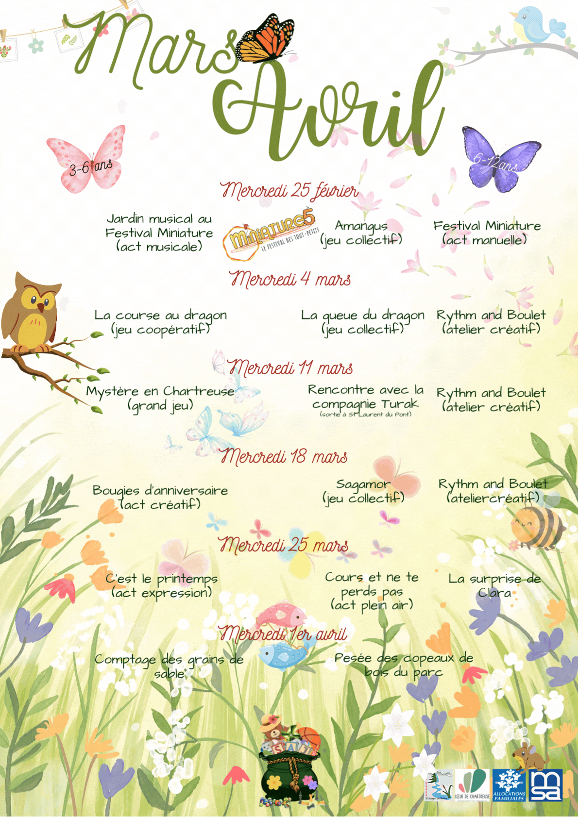 🗓️ Dates d’ouverture de l’ALSH : 25/02 au 01/04
